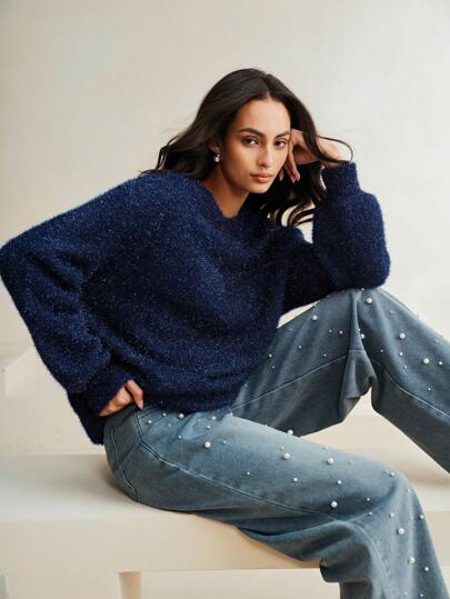 Anewsta 女士时尚针织套头毛衣,1件装,秋季/秋冬季 - 寶藍色 - 查看 2