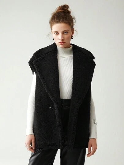 兩顆按鈕的藏式口袋外套,不包含毛衣 - 黑色 - 查看 3