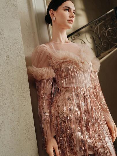 Anewsta 优雅淑女时尚流苏亮片连衣裙 - 粉色 - 查看 1