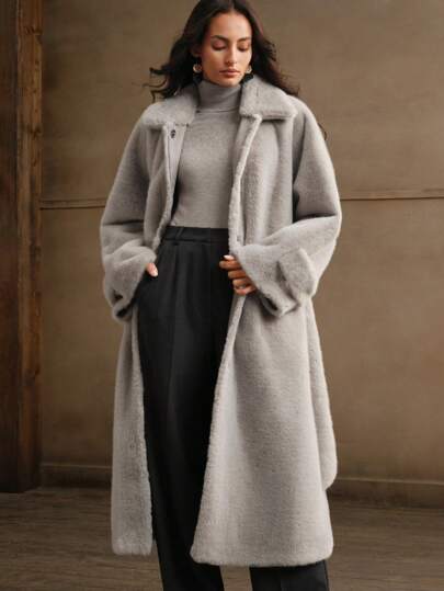 Anewsta 高端收腰蓬松长款大衣 - 淺灰色 - 查看 1