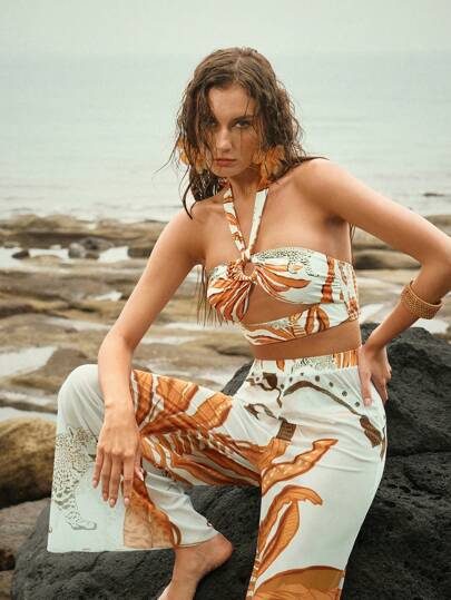 Anewsta 女士吊带上衣和裤子泳装套装,简约时尚,适合夏季 - 彩色 - 查看 1