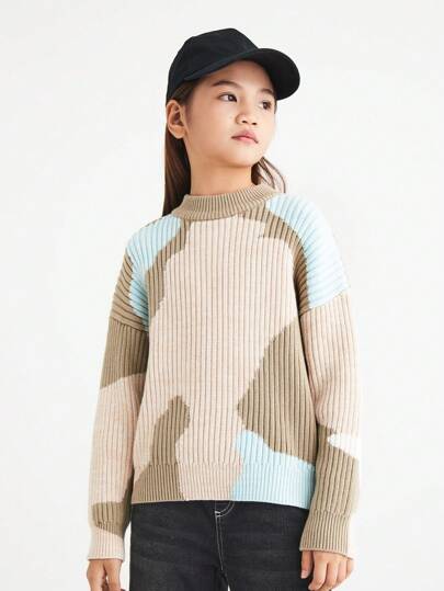 Annil 女童暖和的塗鴉領毛衣,卡其色,含棉 - 卡其色 - 查看 2