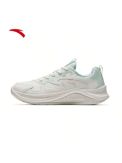 Anta 2024 年冬季女款轻便柔软外底网眼透气休闲跑步鞋 - 象牙白/泡沫綠/螢光高光粉 -10 - 查看 1