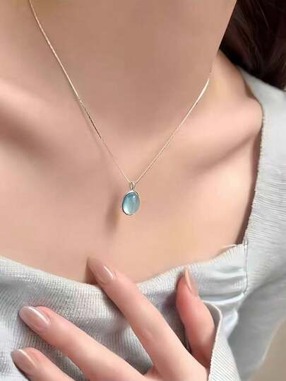 高品质女士海蓝宝石吊坠纯银项链 - 海藍項鍊 - 查看 1