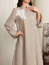 Al Najma 圆领纯色拼布花卉印花宽松阿拉伯风格连衣裙,端庄