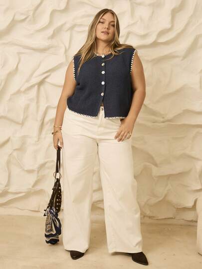 Aralina Curve 秋冬针织 Stolkhom 风格罗纹纽扣休闲上衣,带毯状针脚细节 - 彩色 - 查看 7