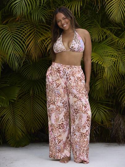 Aralina Curve Luxe 缎面拉式阔腿裤 - 彩色 - 查看 1