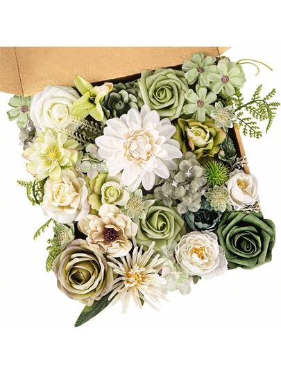 Artificial White Green Dahlias Combo Box Set, Silk Flower For DIY Wedding Bouquets Centerpieces Arrangements Baby Shower Party Home Decorations