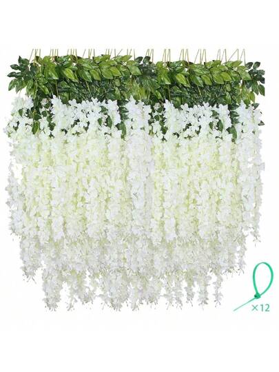 人造紫藤吊花 仿真紫藤花环 丝绸藤蔓藤编装饰 家居婚礼拱门墙花园绿植 卧室户外办公室派对装饰 - 白色 - 查看 10