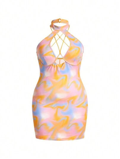 GIOIA TANG 艺术家无袖迷你修身加大码夏季连衣裙,适合节日、派对装、生日装、节日、舞会礼服 - 彩色 - 查看 1