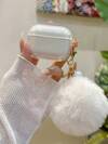 白色毛球和白色铃铛装饰透明耳机盒