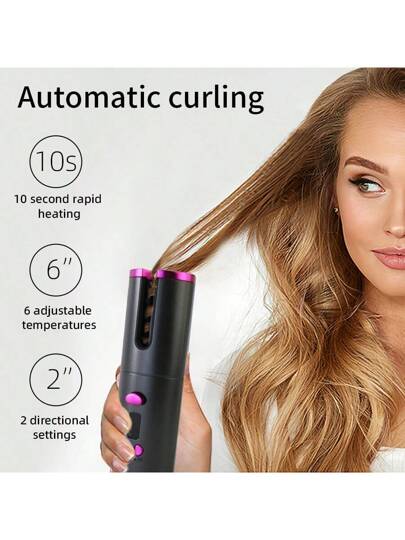 自動捲髮器,無線自動捲髮棒,帶有6個溫度和定時器的陶瓷旋轉捲髮器,可充電攜帶式捲髮棒,自動關機,快速加熱造型用燙鐵 - 灰色 - 查看 4