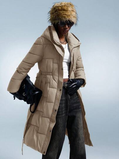 Aveloria GENKIRA 新款腰带显瘦休闲时尚简约高端拉链连帽绗缝外套