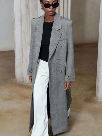 Aveloria Modichic 女式人字纹长款开衫外套,常规版型,秋冬