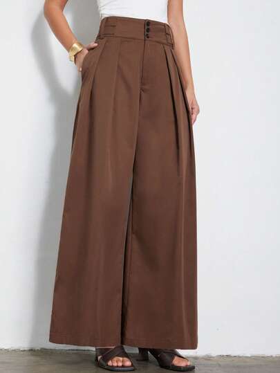 Aveloria Modichic 女士复古法式休闲高腰长款西装裤 - 咖啡棕 - 查看 1
