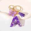 时尚蝴蝶流苏花朵字母钥匙扣,适合女孩和女士,蓝色可爱干花蒲公英字母钥匙扣,背包/手提包装饰礼品袋配件挂绳带证件夹汽车配件包饰圣诞节汽车配件教师朋友姐妹礼物创意
