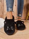 Nuevas zapatillas de casa acolchadas con bordado de dibujos animados para otoño/invierno, diseño lindo de Maneki-Neko, zapatillas de casa cálidas para parejas, color negro