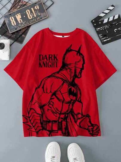 BATMAN X SHEIN 男士休闲字母与人物图案圆领短袖 T 恤,夏季 - 白色 - 查看 6