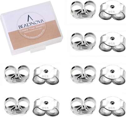 BEADNOVA 925 Sterling Silver Earring Backs Butterfly Earring Backing For Studs Locking Ear Studs Stopper Hypoallergenic Earstud Backings Replacement Secure Earstud Backs For Posts (12 Pcs)