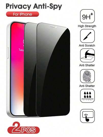 BOLLYMORE 2片装9H硬度防窥钢化玻璃屏幕保护膜,保护隐私,兼容苹果X/Xs/XS Max、11/11 Pro/11 Pro Max、12 Mini/12/12 Pro/12 Pro Max、13/13 Mini/13 Pro/13 Pro Max、14/14 Plus/14 Pro/14 Pro Max、15/15 Plus/15 Pro/15 Pro Max/16/16 Plus/16 Pro/16 Pro Max,防水、防震、防摔、防刮、防指纹,全屏覆盖,适用于日常、办公、家庭使用。 - 2pcs privacy - 查看 2