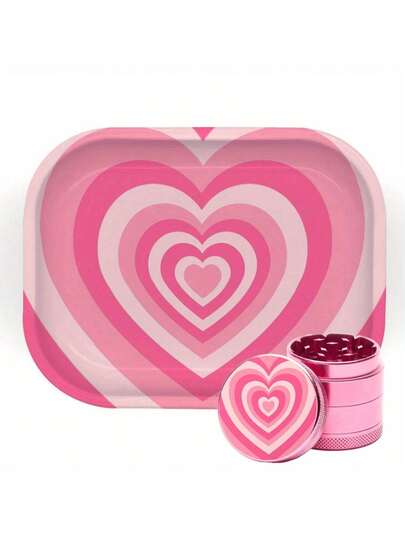 BROS 2 件心形香草研磨器卷盘组合少女粉色烟草套装心形图案玻璃烟灰缸、研磨器、储物托盘,适合男朋友和女朋友的生日礼物、圣诞节礼物 - 彩色 - 查看 2