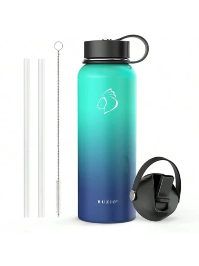 BUZIO 40oz Duet Series Stainless Steel Insulated Water Bottle Wide Mouth With Straw Lid & Flex Cap Drink Flasks