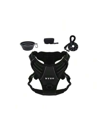 BYTO 無拉力背帶套裝 反光條 5 英尺狗繩 中號 黑色 - 黑色 - 查看 1