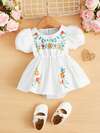 SHEIN 嬰兒印花泡泡袖荷葉邊下擺連體衣洋裝