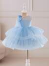 SHEIN Glamorique Kids 花童礼服适合生日派对、婚礼、节庆、女婴粉色 3D 花卉网眼芭蕾舞裙,配蝴蝶结领结,适合正式场合、舞台、钢琴表演、派对、拍照、日常穿着