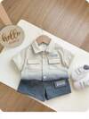 Cozy Pixies 寶寶男童休閒豹紋短袖有領釦卡襖配短褲套裝,有下垂肩設計