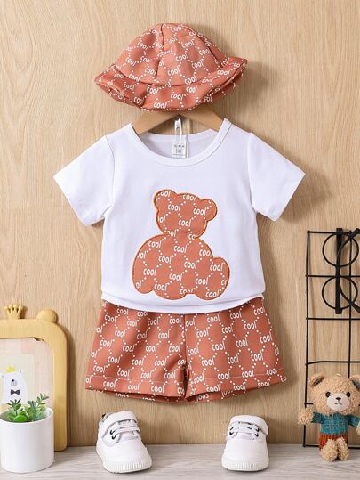 男嬰熊和字母圖案T恤和短褲 - 彩色 - 查看 1