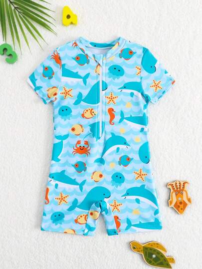 男婴卡通印花连体泳衣 - 彩色 - 查看 1