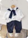 SHEIN 3 件套男婴/女婴基本款白衬衫、松紧腰裤、蓝色披肩套装,适合生日派对、圣诞派对、晚会、表演、婚礼、月庆、洗礼和一周年纪念日