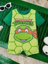 SHEIN Playful Pals 男婴可爱小熊格子印花短袖连体衣,夏季婴儿服装