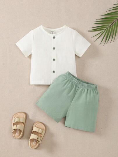 Souflis Souflis 男宝宝春秋圆领简约时尚百搭户外短袖纯色上衣+运动松紧腰直筒百慕大短裤男童两件套 - 彩色 - 查看 1