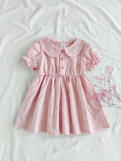 Vintaside Kids 女婴休闲简约花卉印花连衣裙 - 淺粉色 - 查看 1