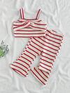 SHEIN Vintaside Kids Babygirl 女婴时尚高端条纹吊带背心和配套条纹阔腿裤套装,非常适合夏季露营、度假、休闲或派对场合