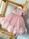 女婴粉色3D立体花朵短袖薄纱圣诞派对优雅连衣裙,公主裙,适合女婴一周岁生日派对、婚礼、感恩节等场合