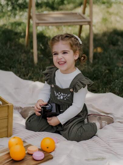 SHEIN 女婴蓬松高领毛衣和灯芯绒盖袖连体裤套装,新品秋冬保暖舒适,时尚韩版休闲装 - 彩色 - 查看 7
