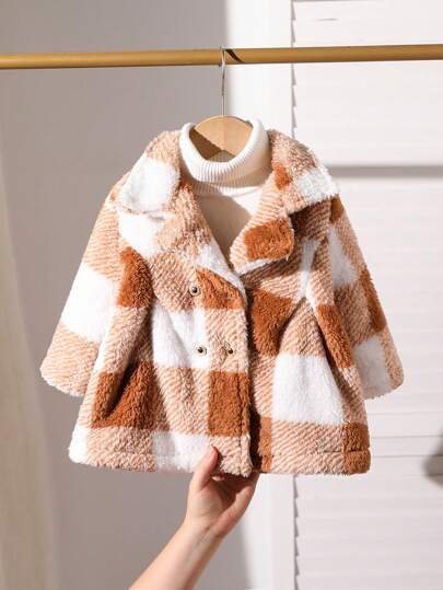 女宝宝格子印花双排扣羊毛长袖夹克秋冬季 - 彩色 - 查看 1