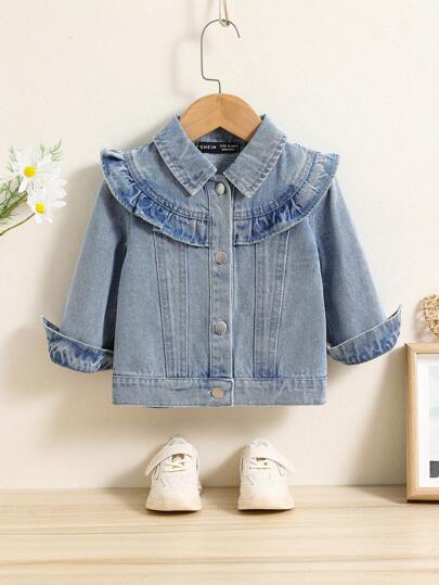 女嬰荷葉邊牛仔夾克 - 中等水洗藍 - 查看 1
