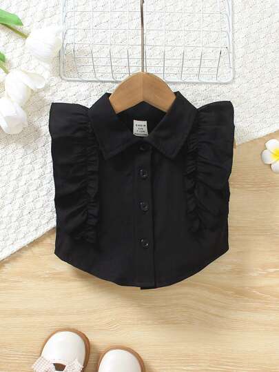 女婴荷叶边不对称盖袖衬衫,夏季 - 黑色 - 查看 1