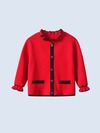 SHEIN 女婴圆领喇叭袖纽扣前褶饰蝴蝶结装饰针织毛衣套装秋冬女装