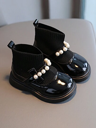 寶寶兒童休閒襪靴彈力防滑鞋學步 - 黑色 - 查看 1
