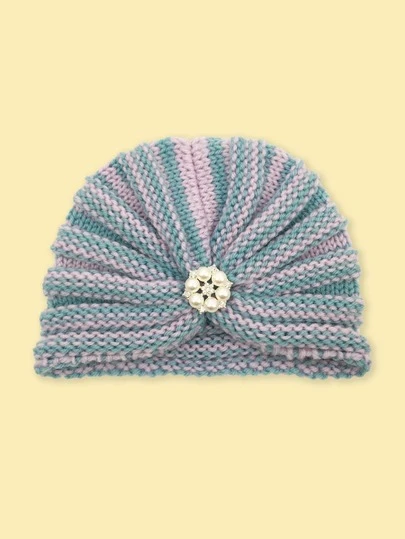 嬰兒針織頭巾帽 - 彩色 - 查看 1