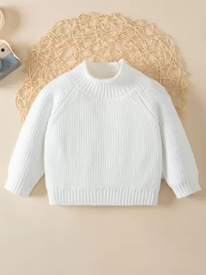 嬰兒女童立領斜肩袖毛衣 - 白色 - 查看 1