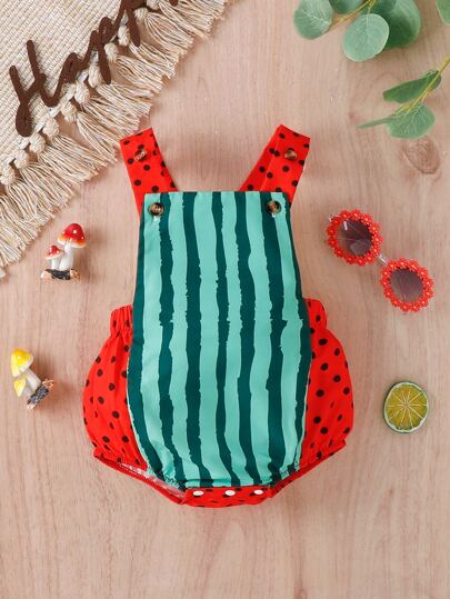 嬰兒西瓜圖案背帶連體衣 - 彩色 - 查看 1