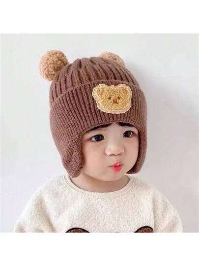 兒童冬季針織帽,可愛的小熊耳套保暖帽,韓風嬰幼兒帽子