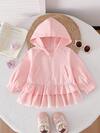 女婴 1 件休闲毛绒耳朵装饰羊毛拉链夹克,秋冬