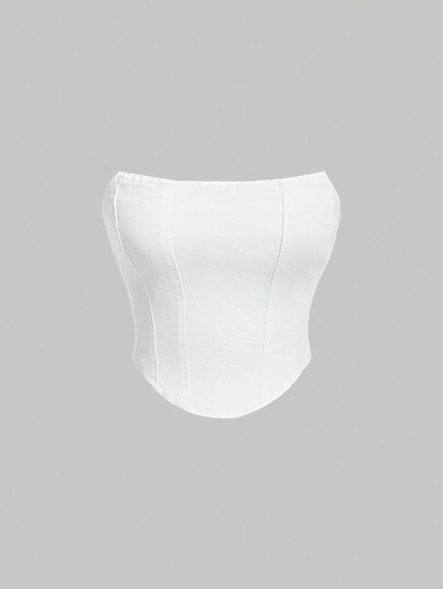 SHEIN MOD 牛仔露肩上衣 - 白色 - 查看 1